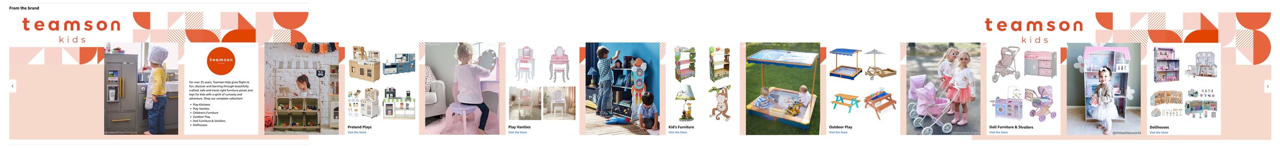 Teamson is a global e-commerce furniture brand selling across the US, Canada, and European markets through major retail platforms including Amazon, Target, Walmart, and Wayfair.