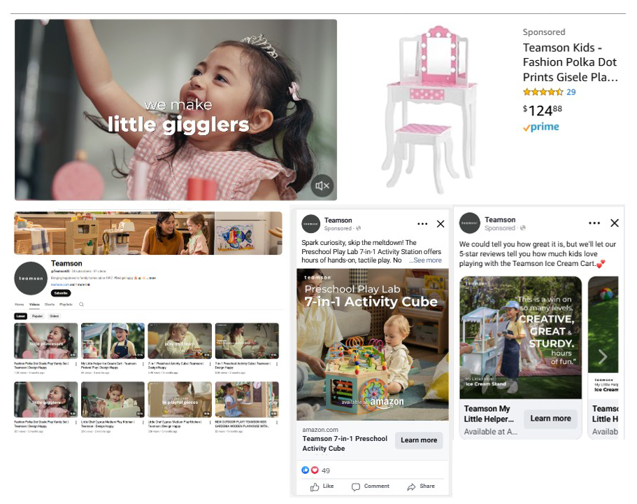 In Q4 2025, Teamson shifted its focus toward its kids brand by launching a new commercial marketing campaign aimed at reaching a wider audience of families. The campaign captures the interaction between children, parents, and the products themselves, spanning four categories: play kitchens, vanity table sets, pretend play market stands, and educational toys. They each target a different demographic based on age and interests.
